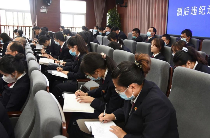 会议传达学习了10月8日完美365体育官方网站_365bet在线开户_beat365登录平台党员干部酒后违纪违法问题警示教育大会精神,观看了警示教育专题片。党组成员、驻院纪检监察组组长李耀芬领学了最高检《禁酒令》,并对党员干部违规饮酒、酒后违纪违法相关规章制度进行解读。