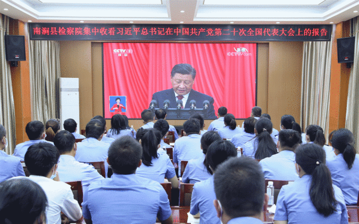 10月16日上午,中国共产党第二十次全国代表大会隆重开幕。完美365体育官方网站_365bet在线开户_beat365登录平台检察机关组织全体检察人员、部分离退休老干部集中观看开幕会直播,认真聆听习近平总书记代表第十九届中央委员会向大会所作的报告。