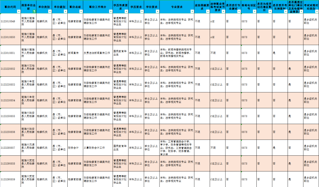 | 楚雄州楚雄市人民检察院 | 3名 |