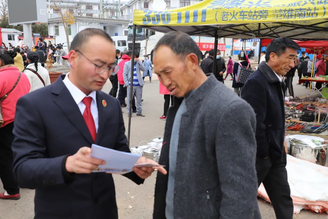 正月初八,是南华县雨露白族乡一年一度的“土主诞辰庆典传统灯会”,南华县检察院利用灯会活动商贩云集、人流量大这一有利时机,开展以“我为群众办实事,送法进乡村”为主题的法治宣传活动,营造浓厚的新春法治氛围。