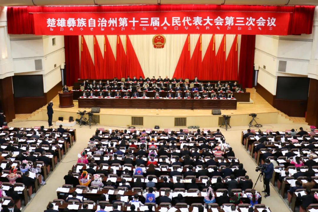 2月9日下午,楚雄彝族自治州第十三届人民代表大会第三次会议举行第二次全体会议。听取州人大常委会主任周兴国作州人大常委会工作报告;听取州中级人民法院院长魏炜作州中级人民法院工作报告;听取州人民检察院检察长肖洁作州人民检察院工作报告。会议以举手表决的方式,表决通过了大会选举办法;表决通过了大会总监票人、监票人名单。