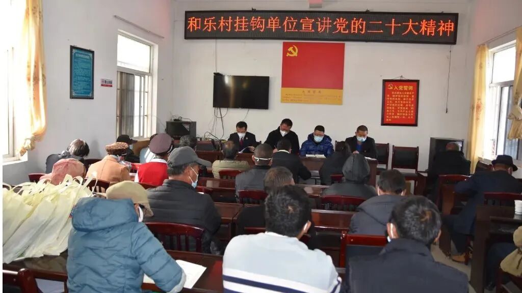 鹤庆县检察院党组副书记、副检察长杨保华带队到和乐村开展党的二十大精神宣讲,推动党的二十大精神深入乡村、深入群众,凝聚乡村振兴强大力量,村干部、驻村工作队员及和乐村党员参加宣讲会。