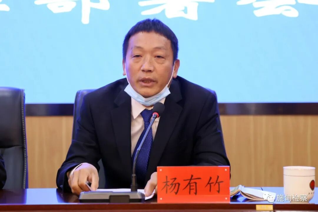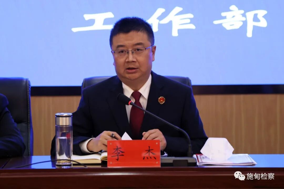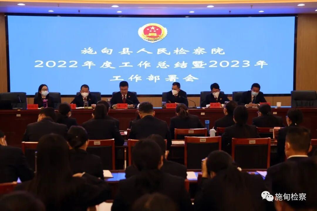 为认真回顾总结2022年度工作,查找问题短板,系统谋划2023年工作思路和目标,奋力推动检察工作高质量发展。1月19日上午,施甸县人民检察院召开2022年度工作总结暨2023年度工作部署会,会议由党组成员、副检察长张兴达主持,全体检察人员参加。 会上案管通报了2022年度业务核心数据,院领导、部门负责人、检察官、检察官助理、书记员代表依次述职。 党组成员、纪检组长杨有竹认真传达学习《关于配合做好2023年春节期间酒驾等问题通报曝光有关工作的通知》并就2023年党风廉政建设工作做部署。 院党组书记、检察长李杰对九名干警的述职进行了点评,并代表院党组向一年来奋斗在工作一线,为施甸检察事业作出贡献的干警表示衷心感谢。他指出,2022年是值得全体检察人员骄傲的一年,施甸检察院坚持为大局服务、为人民司法,克服重重困难,依法能动履职,在“四大检察”均衡发展上取得进步、队伍建设更自信、队伍履职更自觉、队伍发展更自强,各项检察工作取得了可喜成绩。成绩的取得是全院干警辛勤工作、无私奉献的结果,成绩来之不易,工作中积累的经验更弥足珍贵。 欣喜取得成绩的同时,施甸检察院将正视检察工作中存在的短板和弱项,在2023年检察工作中坚持做到:一是政治为先,以能动司法助推施甸高质量发展。二是稳定为重,以检察履职助推平安施甸建设。三是监督为本,以《意见》落实助推检察主业开展。四是初心为源,以宗旨践行助推为民检察形象树立。五是严管为措,以党纪党规执行助推党风廉政建设。六是能力为要,以举措完善创新助推检察队伍建设。