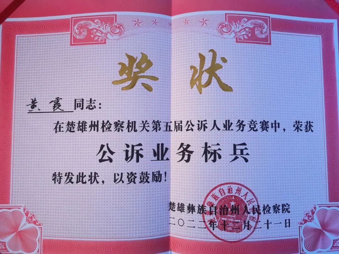 2022年12月21日,第五届楚雄州检察机关公诉业务竞赛落下帷幕,姚安县人民检察院派出1名选手参赛,经过激烈角逐,姚安县选手黄霞在三十多名参赛选手中脱颖而出,以总分第一的成绩斩获“公诉业务标兵”称号,充分展现了姚安县刑事检察的业务水平和检察风采。
