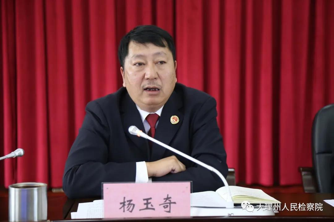 州院党组成员、副检察长杨玉奇对贯彻落实好高检院陈国庆副检察长对大理检察工作的指示精神提出八点要求:一是坚决打好扫黑除恶专项斗争收官战;二是注重提升认罪认罚从宽制度的办案质效;三是全力推进打击整治跨境违法犯罪专项行动;四是创新工作方式,推动派驻检察监督工作见实效;五是深化落实“案件比”质效评价标准;六是多措并举不断提升案件质量;七是构建双赢多赢共赢刑事诉讼监督新格局;八是持续强化刑事检察队伍政治和业务建设。